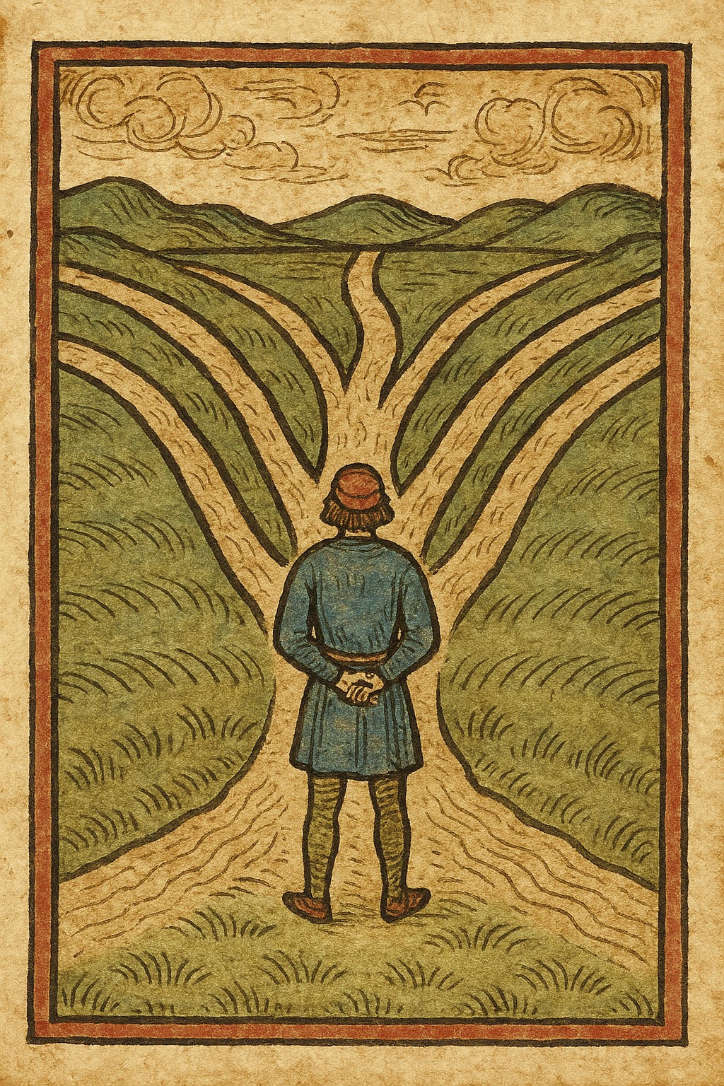 Image designed by me, generated by Chatgpt. I like this image even though it has seven rather than five paths (which is the theme of the reading). I have now learned that AI sometimes can’t distinguish between numbers of objects. I could get seven paths, or three, but not five. So be it. I deem the extra two paths to be mystery-paths… waiting to be discovered by the adventurous and open-minded.